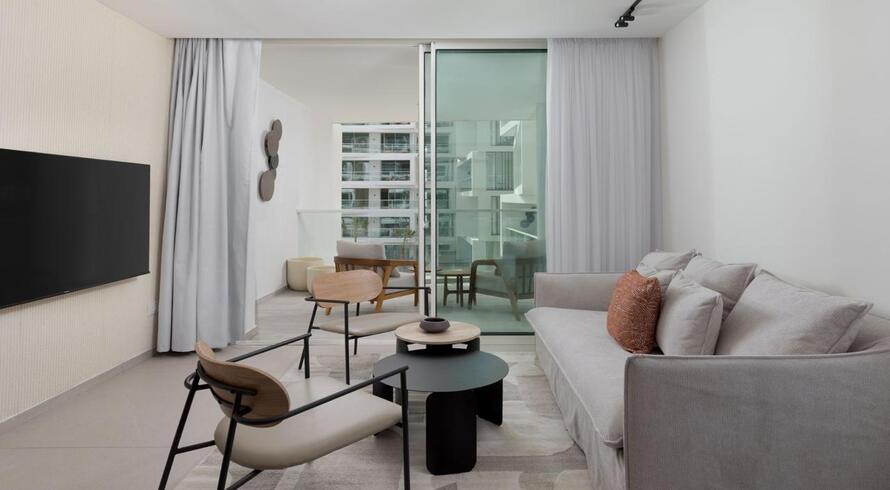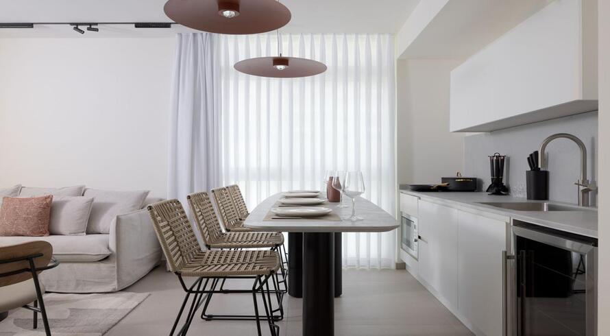 L’appartement a été conçu avec des matériaux de haute qualité et une attention particulière portée aux détails. D’une surface intérieure de 45,58 m², il s’ouvre sur une magnifique terrasse de 10,05 m², idéale pour profiter du climat ensoleillé d’Eilat tout au long de l’année.