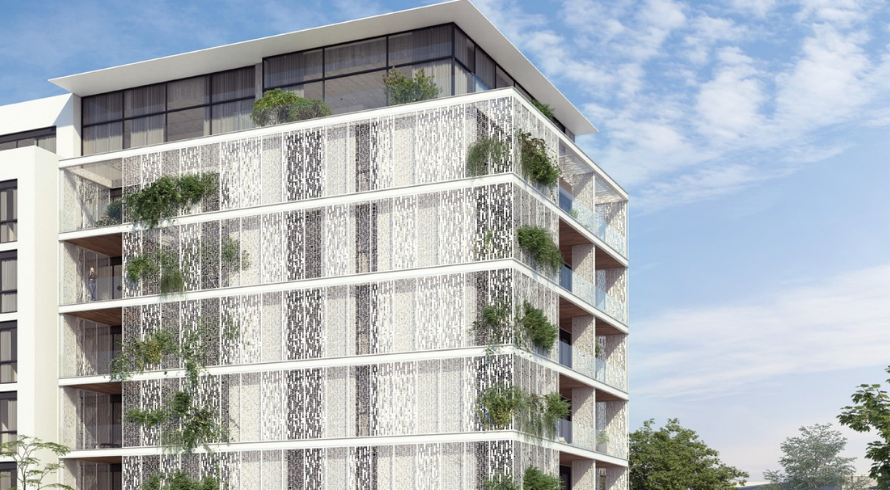 Conçu par le célèbre cabinet Gal Marom Architects, le bâtiment se distingue par sa façade unique : une moucharabieh moderne blanche. Cette enveloppe élégante ne se contente pas d’être esthétique ; elle sert de protection solaire intelligente (notamment pour la façade sud), créant des jeux de lumière et une élégance intemporelle qui font de cette résidence un véritable repère urbain.